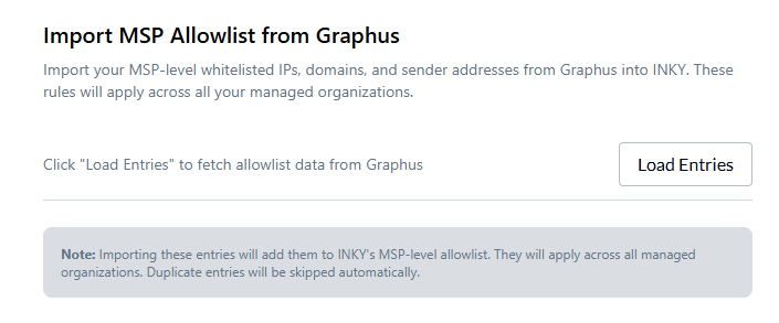 For MSPs: A new "Import Lists" tab in Partner Center lets you selectively import Graphus allow lists for your managed organizations, giving you control over which entries to migrate.
