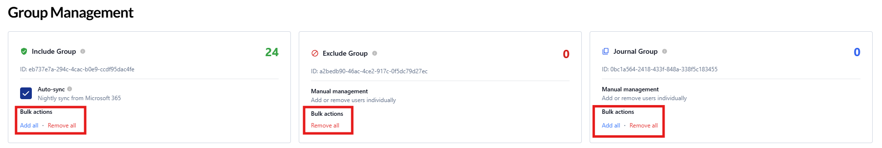 Manage included, excluded, and journaling users directly in INKY Admin Center